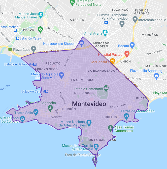 - Si se encuentran dentro de la zona de referencia en la ciudad de Montevideo, según mapa adjunto (códigos postales: 11000, 11100, 11200, 11300, 11600 y 11800).